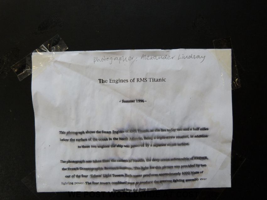 Alexander Lindsay photo 'The Engines of RMS Titanic' information verso (39cm x 50cm)