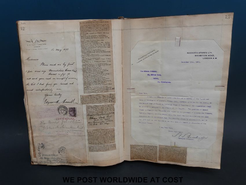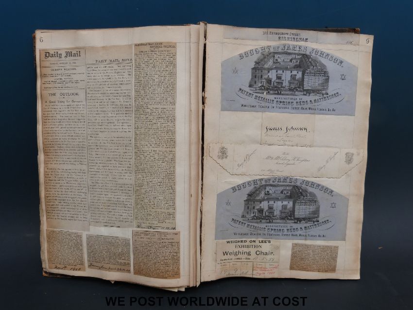 A ledger/scrap album with ephemera from Johnson's Drapers, based in Birmingham, c1900-1907