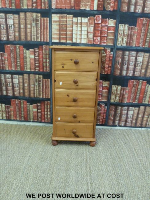 A pine chest of five drawers (W46 D39 H97cm)
