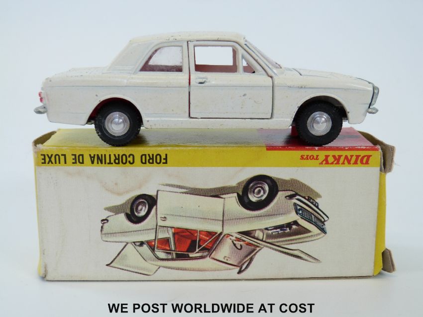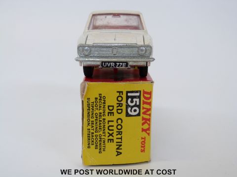 Dinky Toys diecast model Ford Cortina De Luxe, 159, with cream body, red interior and spun hubs, in original box.