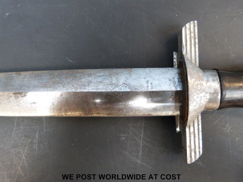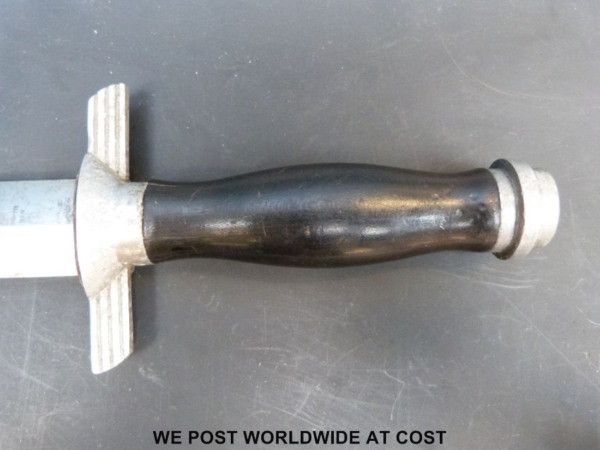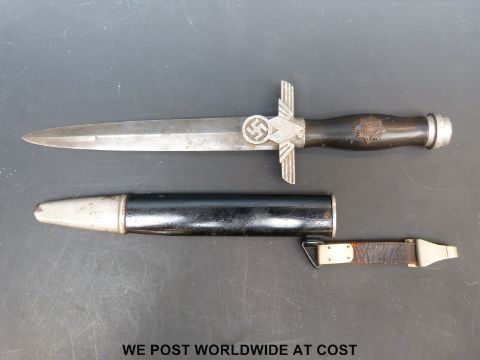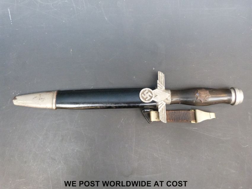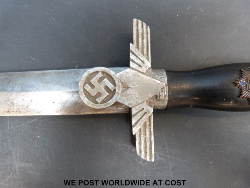 A Nazi German Third Reich Reichsluft Schutzbund (RLB) Air Raid Protection League officer's dagger by Paul Weyersberg, Solingen. With 21.5cm double edged blade, the hilt with eagle and swastika, the ebonised handle with enamelled RLB sunbust badge. In original scabbard with hanger, overall length 37cm