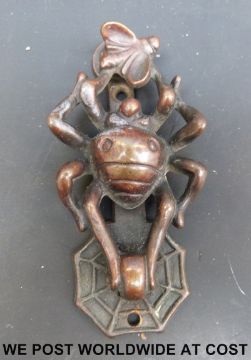 A small collection of brass / bronze door knockers including insect, cherub etc (largest approximately 11cm high)