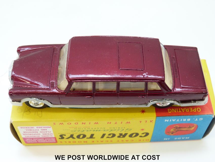 Corgi Toys diecast model Mercedes Benz 600 Pullman, 247, with metallic maroon body, cream interior and operating windscreen wipers, in original box.