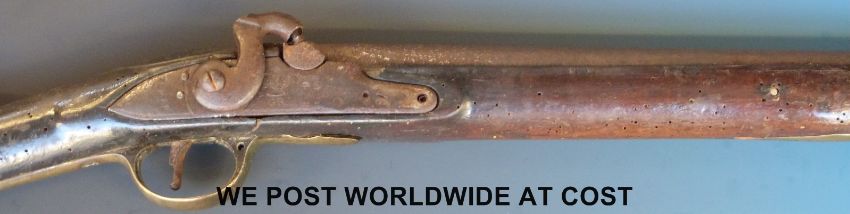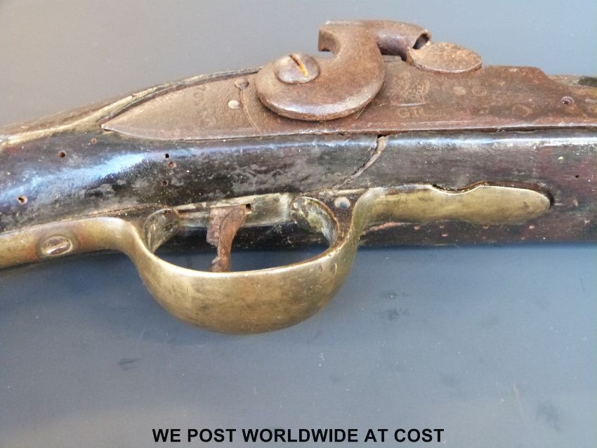 Percussion hammer-action Brown Bess rifle with lock marked 'Tower' and with crown over GR cipher, brass mounts and 35inch barrel, overall length 129cm