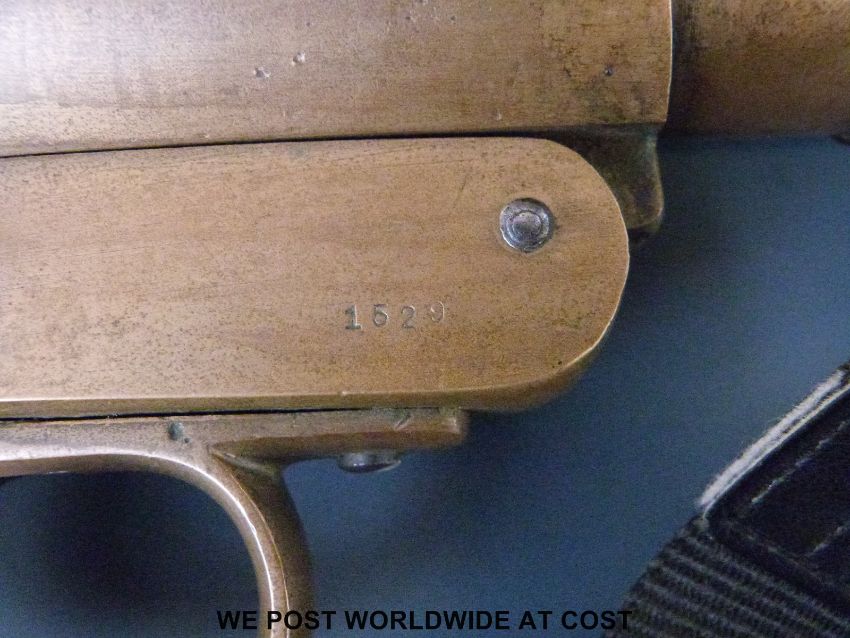 Wolseley No 1 Mark III flare gun or Very/signal pistol marked Woseley 1917 and with multiple proof marks, overall length 27cm PLEASE NOTE THAT A VALID RELEVANT FIREARMS/SHOTGUN CERTIFICATE IS REQUIRED TO HANDLE/PURCHASE THIS ITEM.