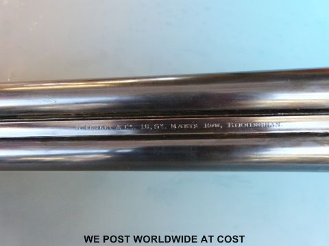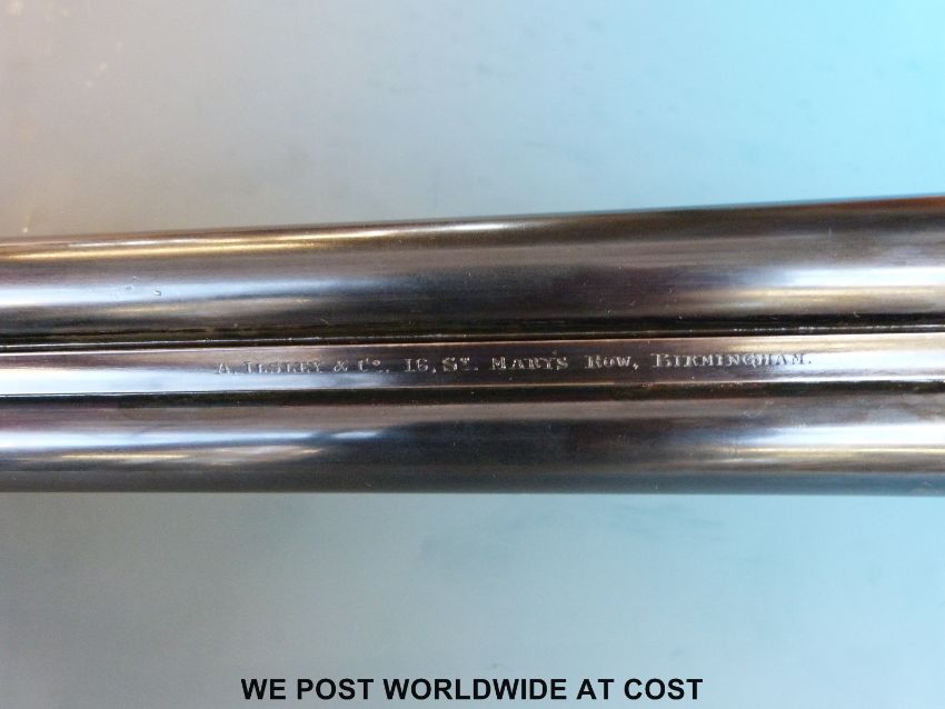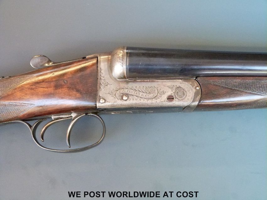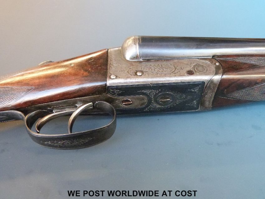 Arthur Illesley & Co side by side double barrelled shotgun with ornate engraving, named locks, chequered figured stock and 28inch barrels, serial number 2046, overall length 115cmPLEASE NOTE THAT A VALID RELEVANT FIREARMS/SHOTGUN CERTIFICATE IS REQUIRED TO HANDLE/PURCHASE THIS ITEM