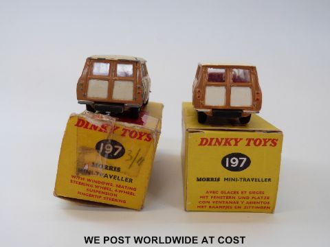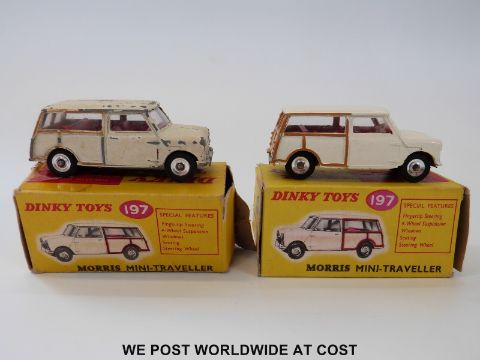 Two Dinky Toys diecast model Morris Mini-Travellers, 197, both with cream body, red interior and spun hubs, in original boxes.