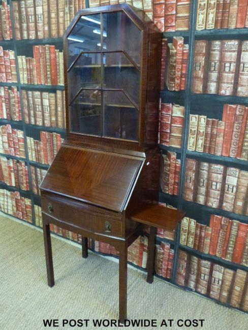 A mahogany Art Deco style bureau bookcase with Podger & Davis Ltd Weston Super Mare plaque to inside of drawer (W61 D47 H174cm)