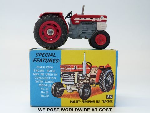 Corgi Toys diecast model Massey-Ferguson 165 Tractor, 66, with red white and grey body, in original box.