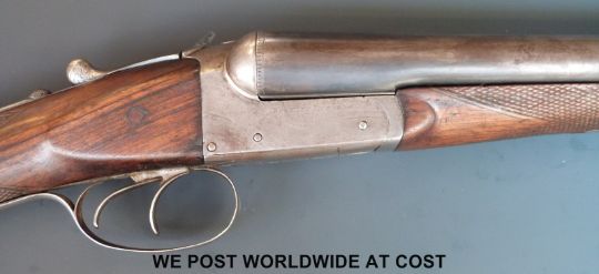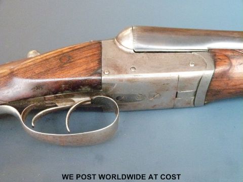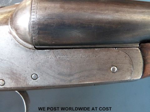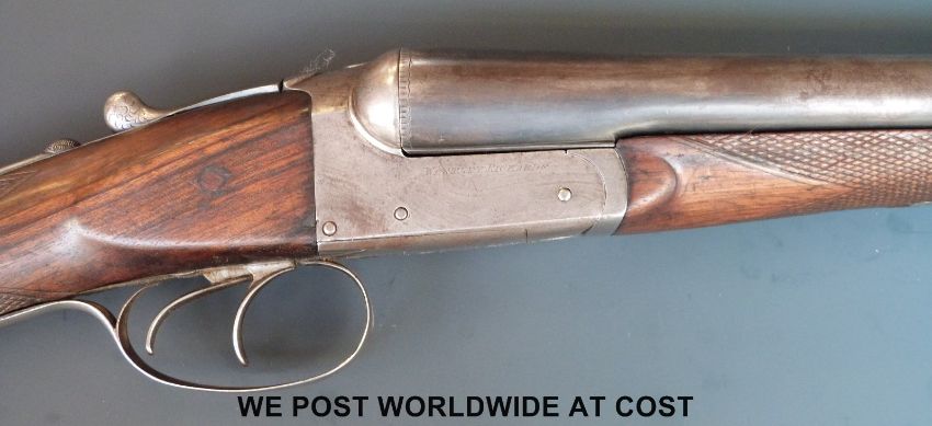 Westley & Richards 12 bore side by side double barrelled shotgun with chequered grip, named locks and 28inch barrels, serial number 5410, overall length 113cmPLEASE NOTE THAT A VALID RELEVANT FIREARMS/SHOTGUN CERTIFICATE IS REQUIRED TO HANDLE/PURCHASE THIS ITEM