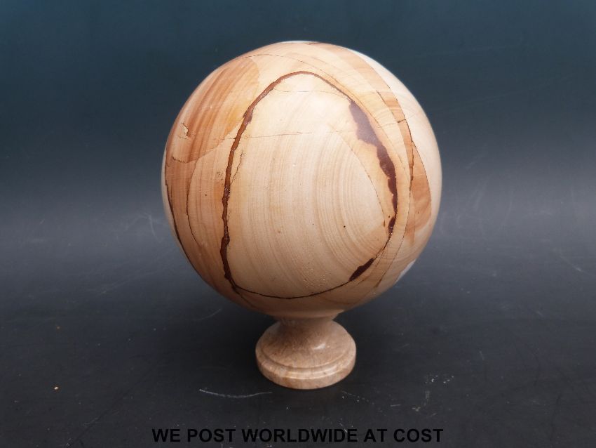 A hardstone ball (diameter 14cm) on stand