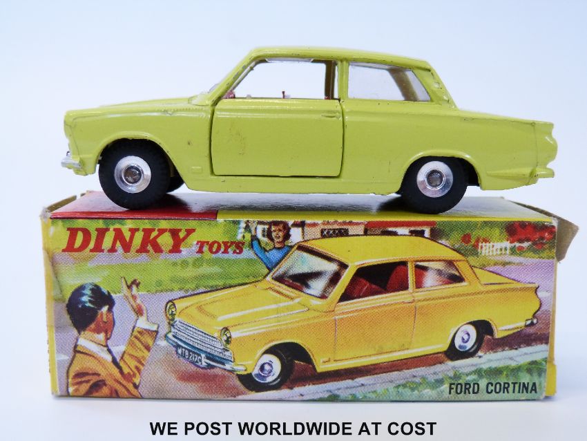 Dinky Toys diecast model Ford Cortina, 133, with pale lime body, red interior and spun hubs, in original box.