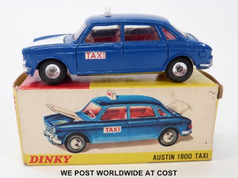 Dinky Toys diecast model Austin 1800 Taxi, 282, with blue body, white bonnet and boot and red and white door and roof decals, in original box.