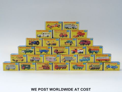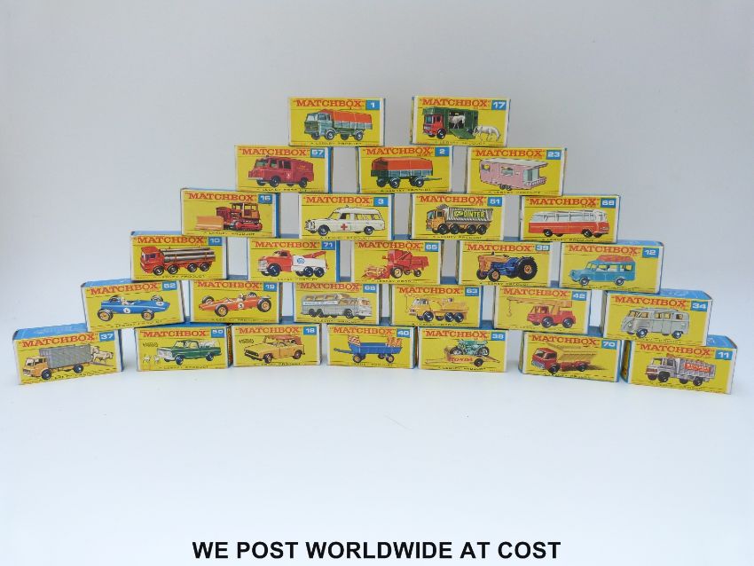 Twenty-seven Matchbox Lesney 1-75 series diecast model vehicles, 1, 2, 3, 10, 11, 12, 16, 17, 18, 19, 23, 34, 37, 38, 39, 40, 42, 50, 51, 52, 57, 63, 65, 66, 68, 70 and 71, all in original 'F2' boxes.