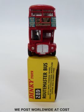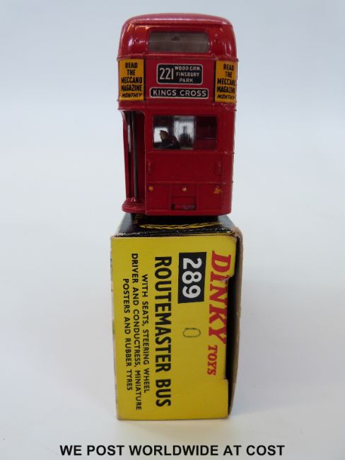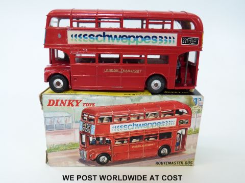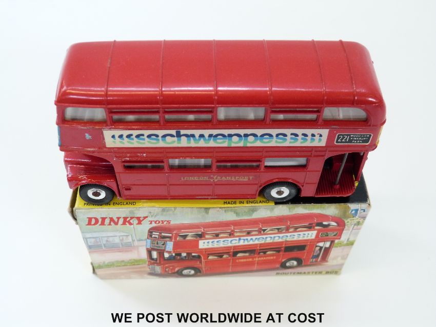 Dinky Toys diecast model Routemaster Bus 'Schweppes', 289, with red body and blue and green logo on white transfers, in original box.