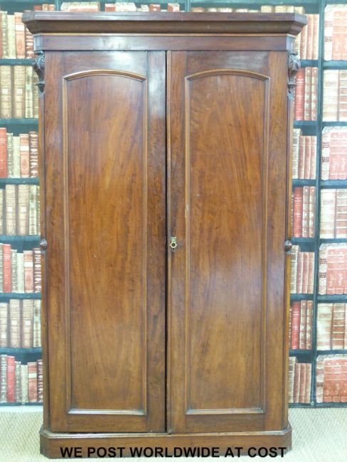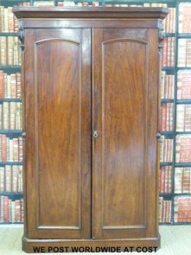 A Victorian mahogany compactum, the right hand side being hanging space, the right hand side having linen press trays and drawers (W130 D56 H205cm)