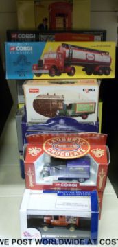 Eighteen Corgi diecast models of commercial vehicles and vehicle sets including Royal Worcester Vans, The Connoisseur Collection, Bedford Platform trailer and container, GPO telephone set, Ford delivery van set, etc, all in original boxes
