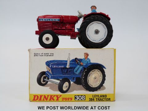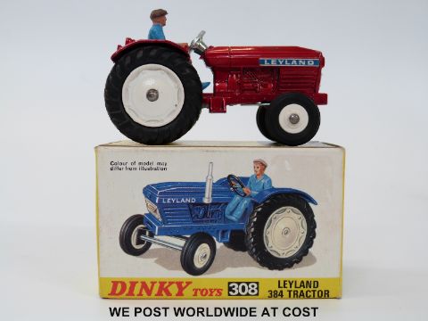 Dinky Toys diecast model Leyland 384 Tractor, 308, with metalic red body, white hubs and driver, in original box
