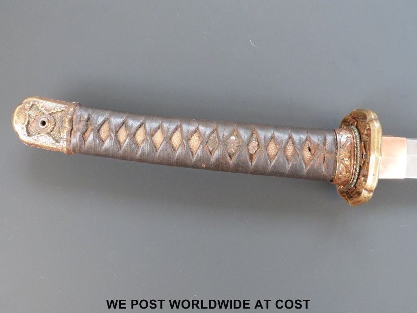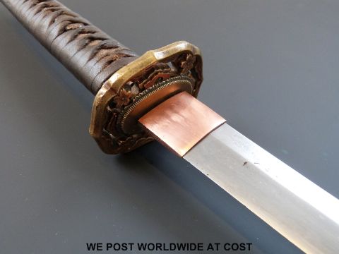 A Japanese Katana Shingunto sword, the early blade with clear visible Hamon.