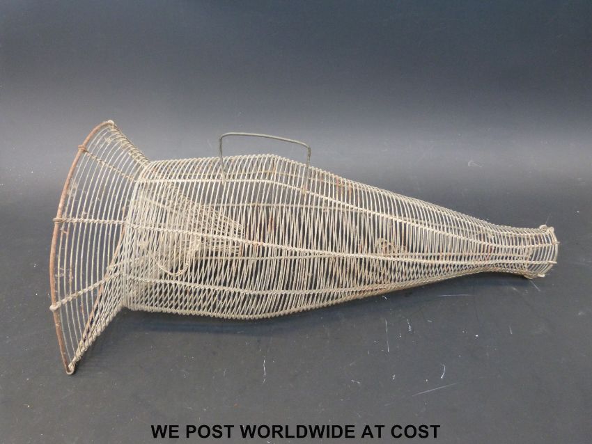 A vintage wire fish or crayfish trap