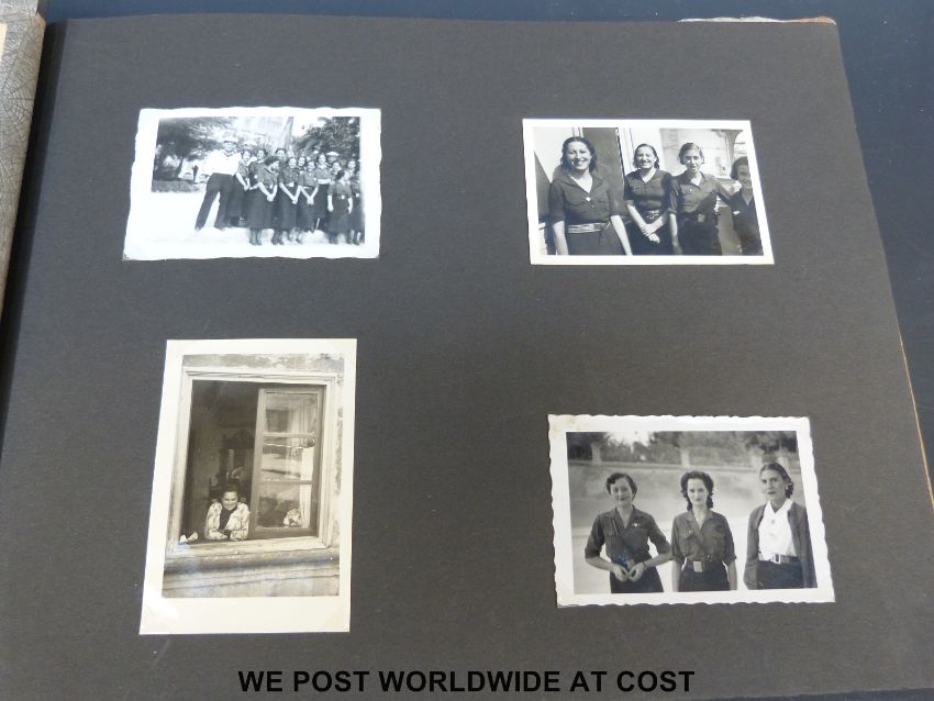 A silk covered photo album with watercolour of the 'Panzerschiff Admiral Scheer' (tank carrier, Admiral Scheer) to front. Possibly showing the naval campaign of the ship with photographs of the Norwegian Fjords, Southern Italy, Northern Spain and North Africa; also recreational activities including a bull fight, St. Peter's Square, The Vatican and Sicily. The album concludes with group photographs of the ship's crew