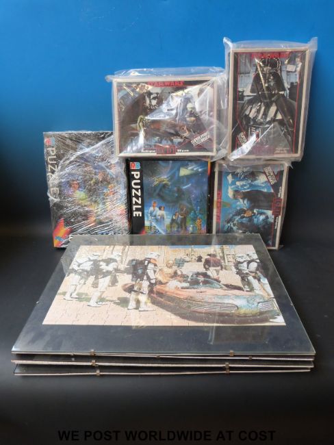 Ten Waddingtons and MB Star Wars jigsaw puzzles, all with original boxes, some in glass displays