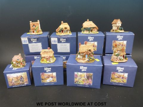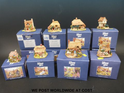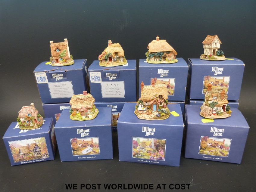 Twelve blue boxed Lilliput Lane houses to include Borrowdale School, Applejack Cottage, Boxwood Cottage, Hampton Moat and Fresh Today