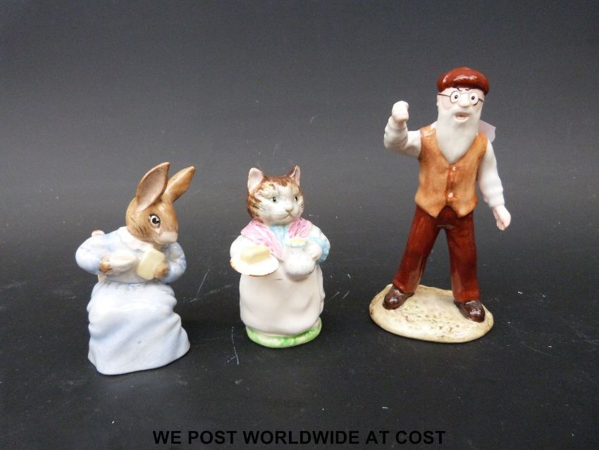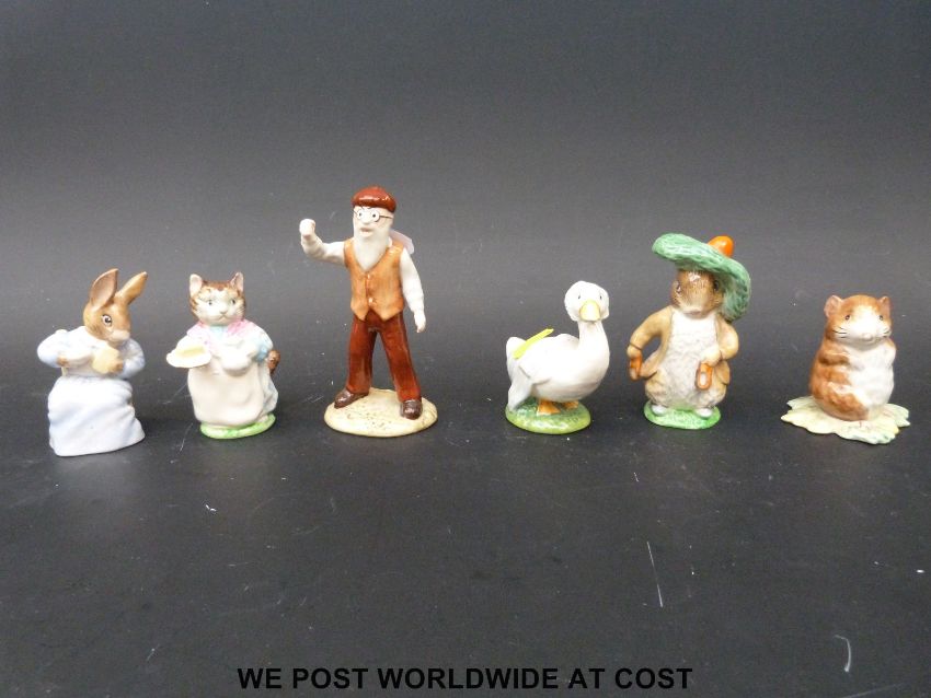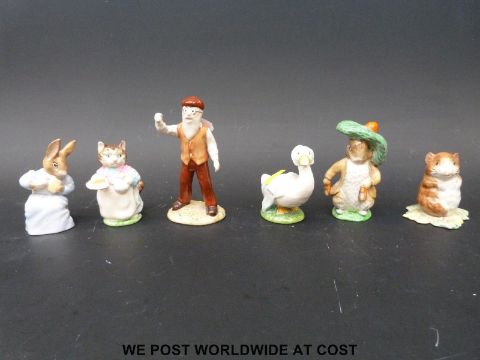 Six Beswick (BP3B) and Royal Albert Beatrix Potter figures including Timmy Willie, Rebeccah Puddle-duck, Ribby and Mr McGregor