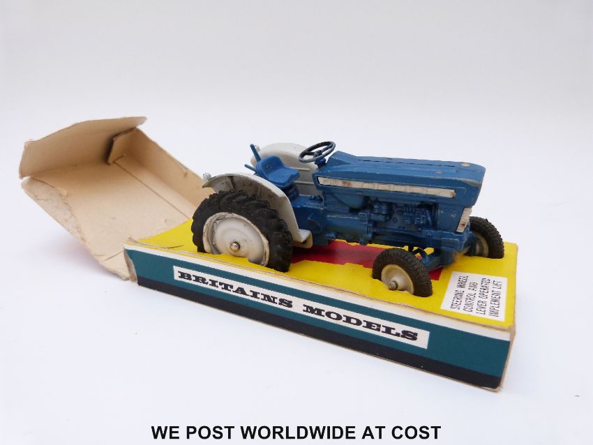 Britains Ltd diecast model Ford Super Major 5000 Diesel Tractor with blue body and white plastic hubs, in original box
