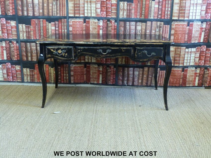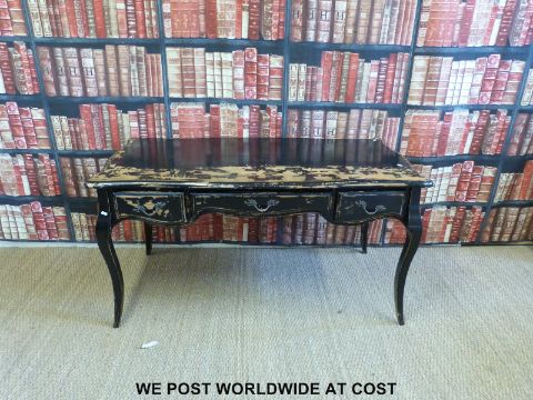 A continental lacquer style desk with three drawers (W150 D75 H79)