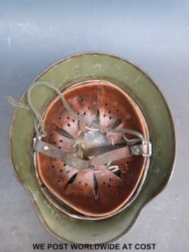 A WWII German SS helmet stamped ET66 and 3683 to inner rim