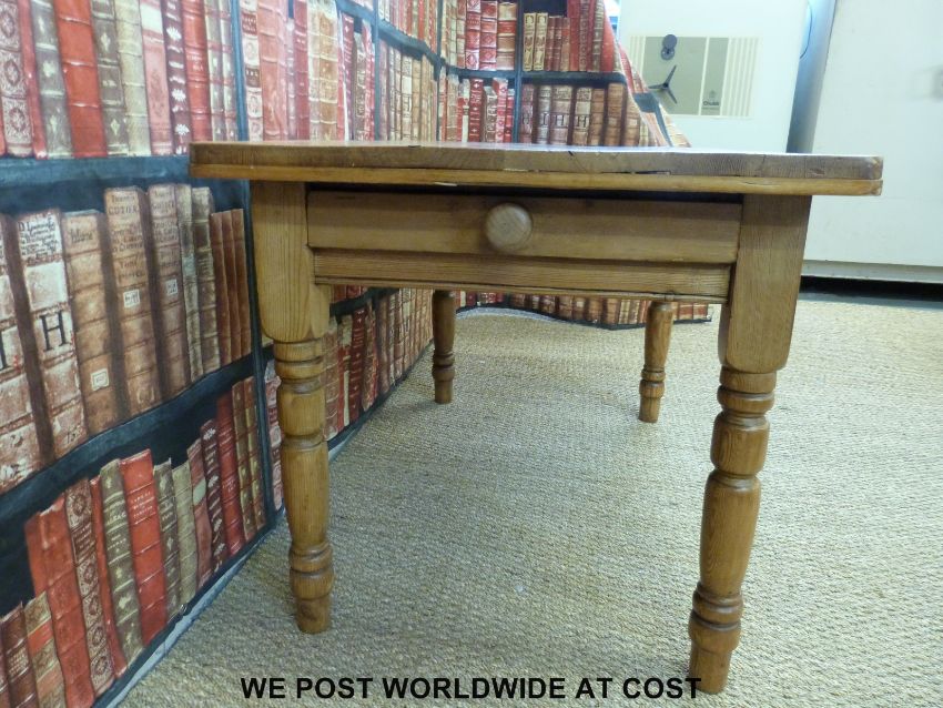 A pine kitchen table with single drawer (H71 W120.5 D73.5cm)