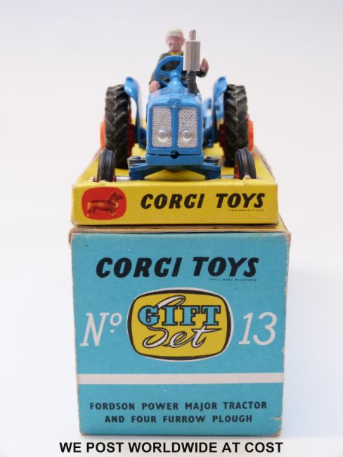 Corgi Toys diecast model Gift Set No.13 Fordson Power Major Tractor and Four Furrow Plough, in original box with inner tray.