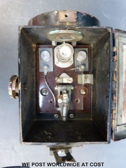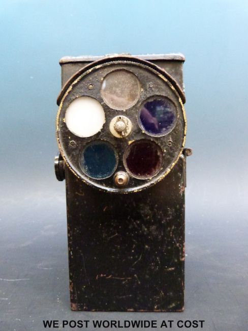 An Admiralty pattern 1038 signalling lantern with trigger mechanism and five various lenses