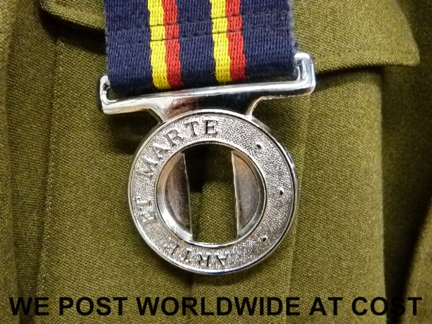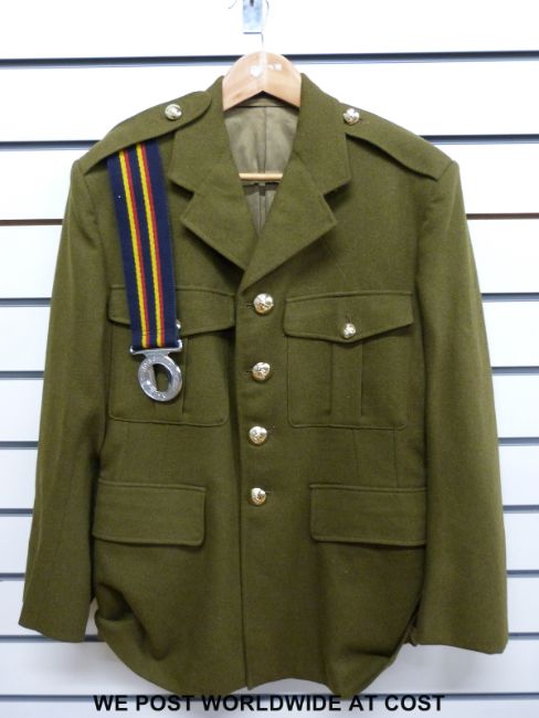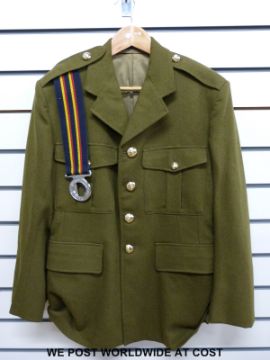 A Number 2 dress jacket for The Royal Electrical and Mechanical Engineers, complete with belt with the inscription Arte et Marte (By Skill and by Force)