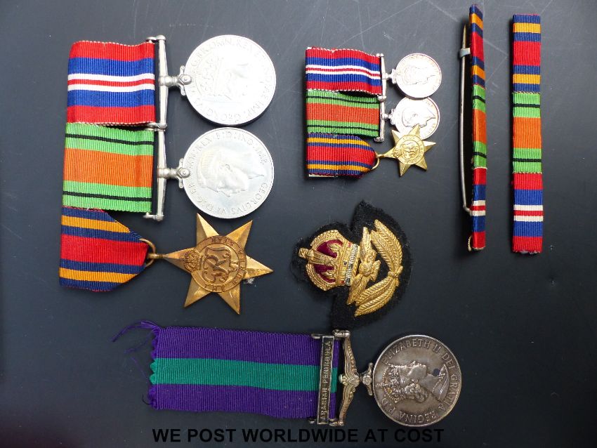 A set of WWII and later medals comprising 1939-1945 medal, Defence medal, Burma Star and Elizabeth II General Service medal with Arabian Peninsula clasp marked Wg. Cdr. W. E. Nelson RAF, together with a quantity of WW2 and later epaulettes, buttons etc