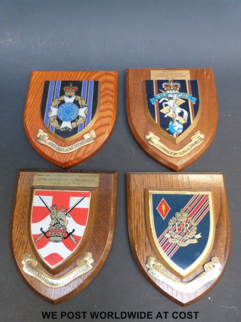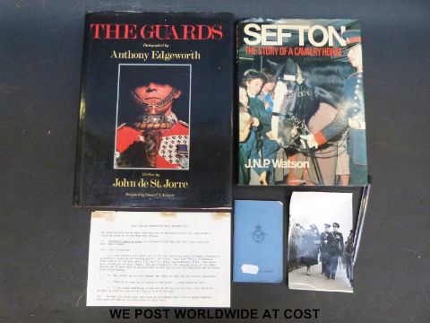 A collection of military ephemera including four plaques comprising 110 Provost Company, Royal Army Chaplains, Royal Engineers, Paderborn Garrison, 1937 photograph Dorset Regiment camp in India, Winchester dogs and officers 1992, a lifeguards print, photograph of Princess Marina inspecting the Dorsets, 'The Guards' and 'Sefton' books, etc