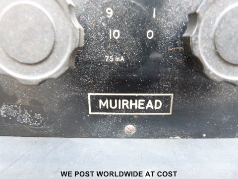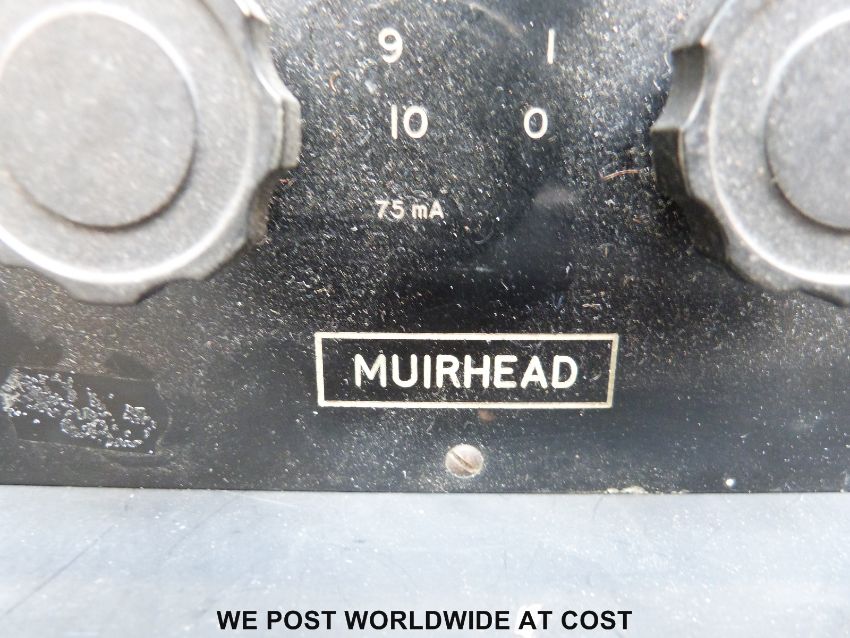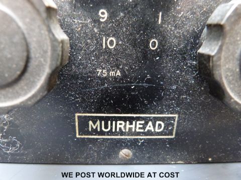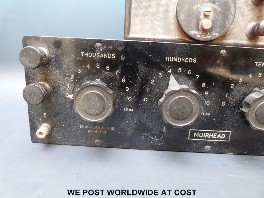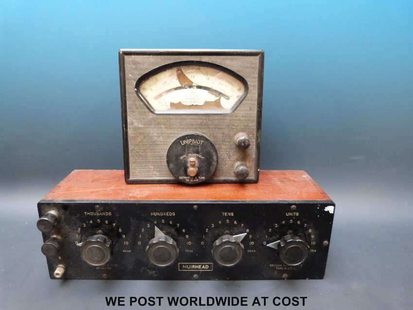 A Decade Resistance box, type A-25-L by Muirhead & Co Ltd No. 141959 together with a bakelite cased Unipivot amp meter