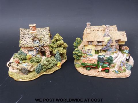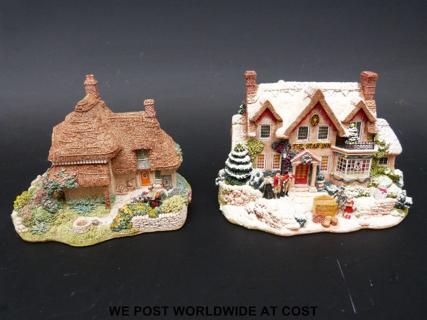 Two large blue and two large green boxed Lilliput Lane houses to include Gertrude's Garden, Cruck End, Old Scrump Farm and The Star Inn