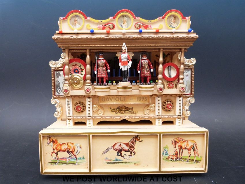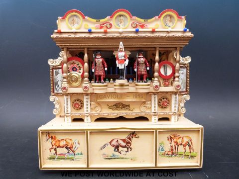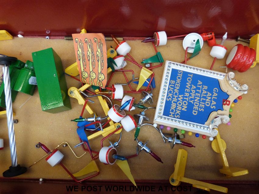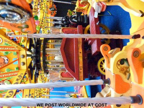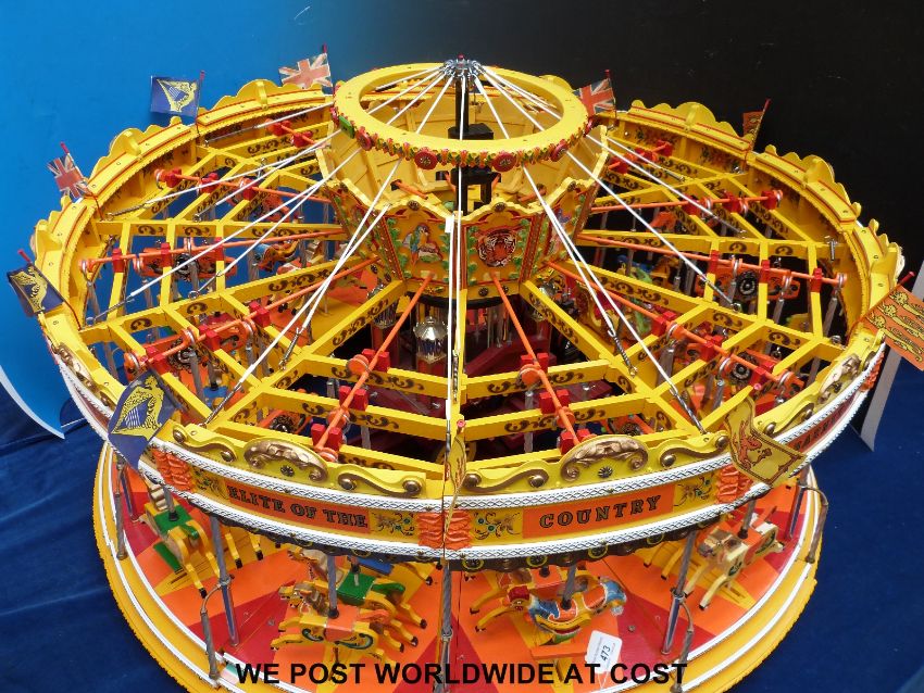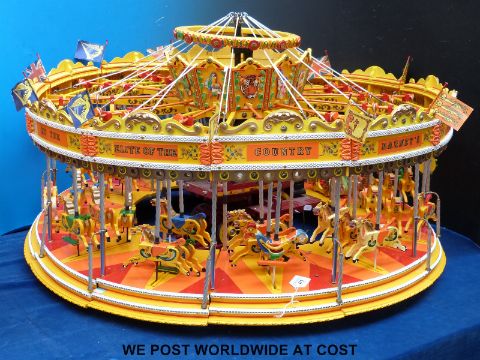 A scratch built set of fairground steam gallopers to approximately 1/12 scale together with packing trucks, centre engine and organ, diameter 100cm