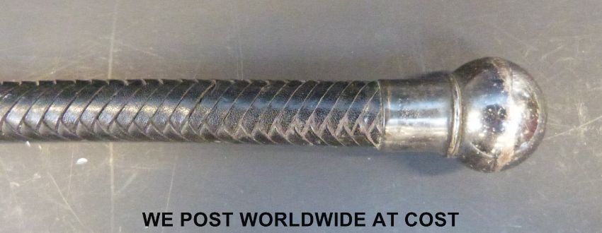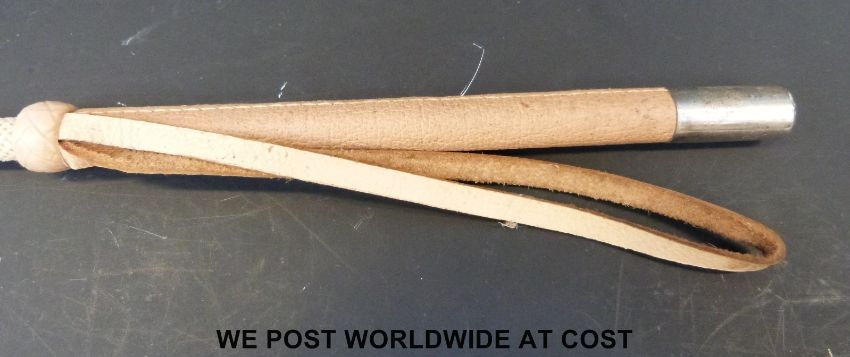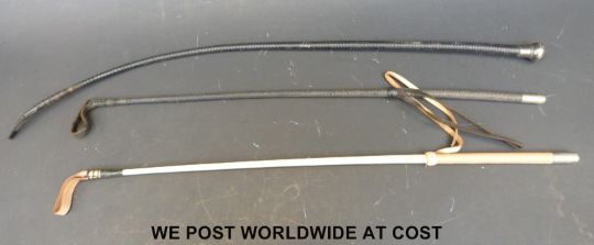A silver topped riding crop by Swaine, together with two others with white metal tops