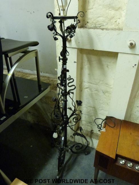 A floral metal standard lamp in the manner of Benson, with height adjustment