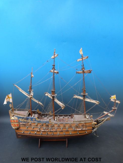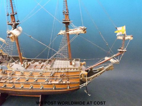 A scratch built model of a galleon, 63cm long