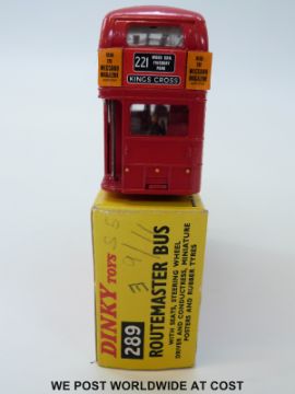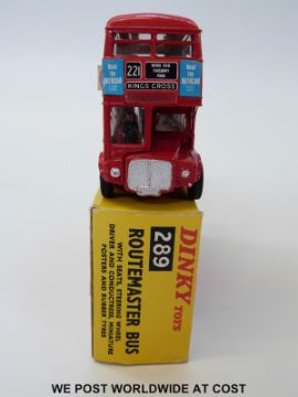 Dinky Toys diecast model Routemaster Bus 'Esso Safety Grip Tyres', 289, with red body and blue and red logo on white transfers, in original box.