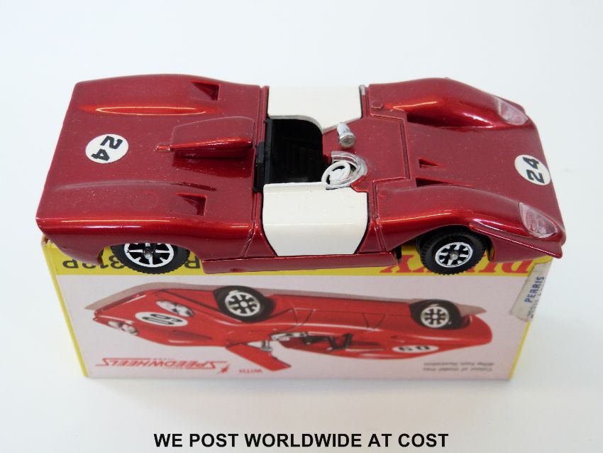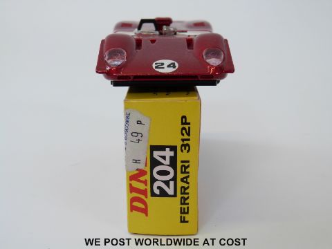 Dinky Toys diecast model Ferrari 312P, 204, with metallic red body and white doors, racing number '24', in original box.