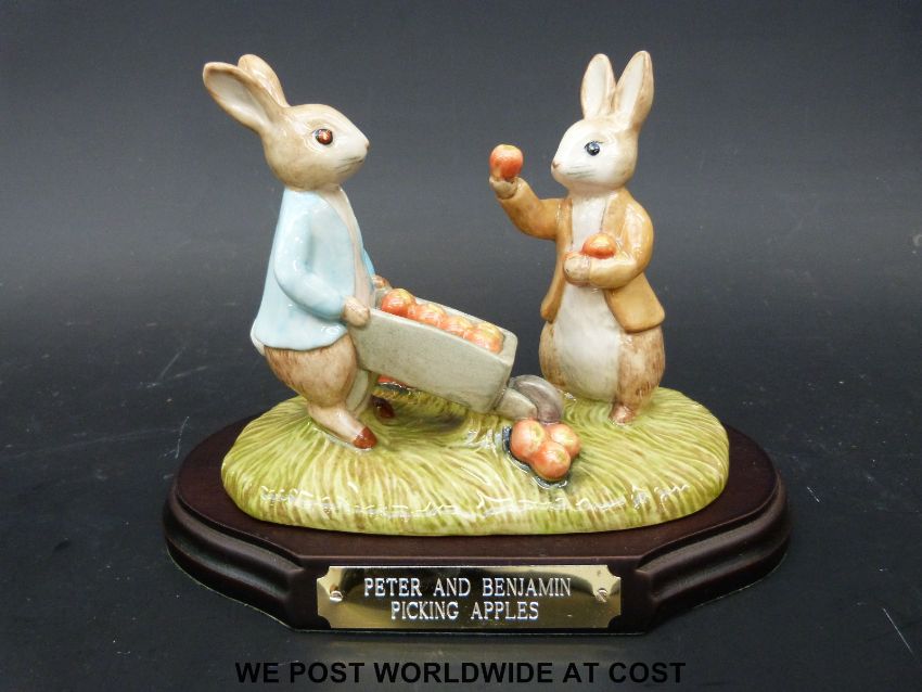Beswick Beatrix Potter tableau Peter and Benjamin Picking up Apples, with stand, certificate and box