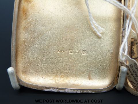 A George V hallmarked silver enamel cigarette case with horses on oval plaque to front, Birmingham 1919, maker John Rose, height 9cm (84g all in)