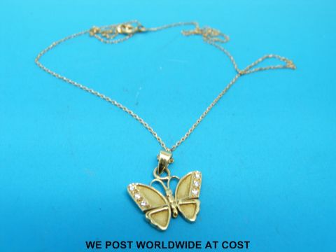 A 9ct gold necklace set with diamonds in the form of a butterfly (3.3g)