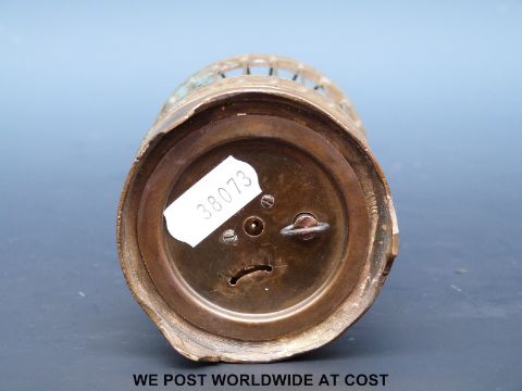 A small automaton clock in the form of a bird in a cage, the bird moving as the clock ticks, 12cm tall