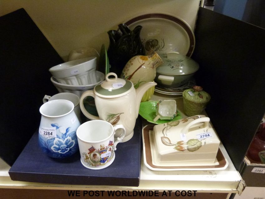 A collection of ceramics including a Susie Cooper coffee pot, Bing and Grondahl vase, Shelley cream jug, Carltonware, and a Keith Murray Wedgwood plate